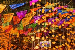 The Day of the Dead ceremonies take place on November 1-2 throughout most of Mexico. The origin is thought to be an Aztec harvest festival where “ofrendas” or offerings were placed on the gravesite of the departed.