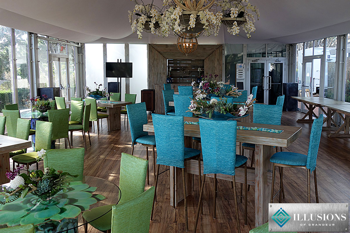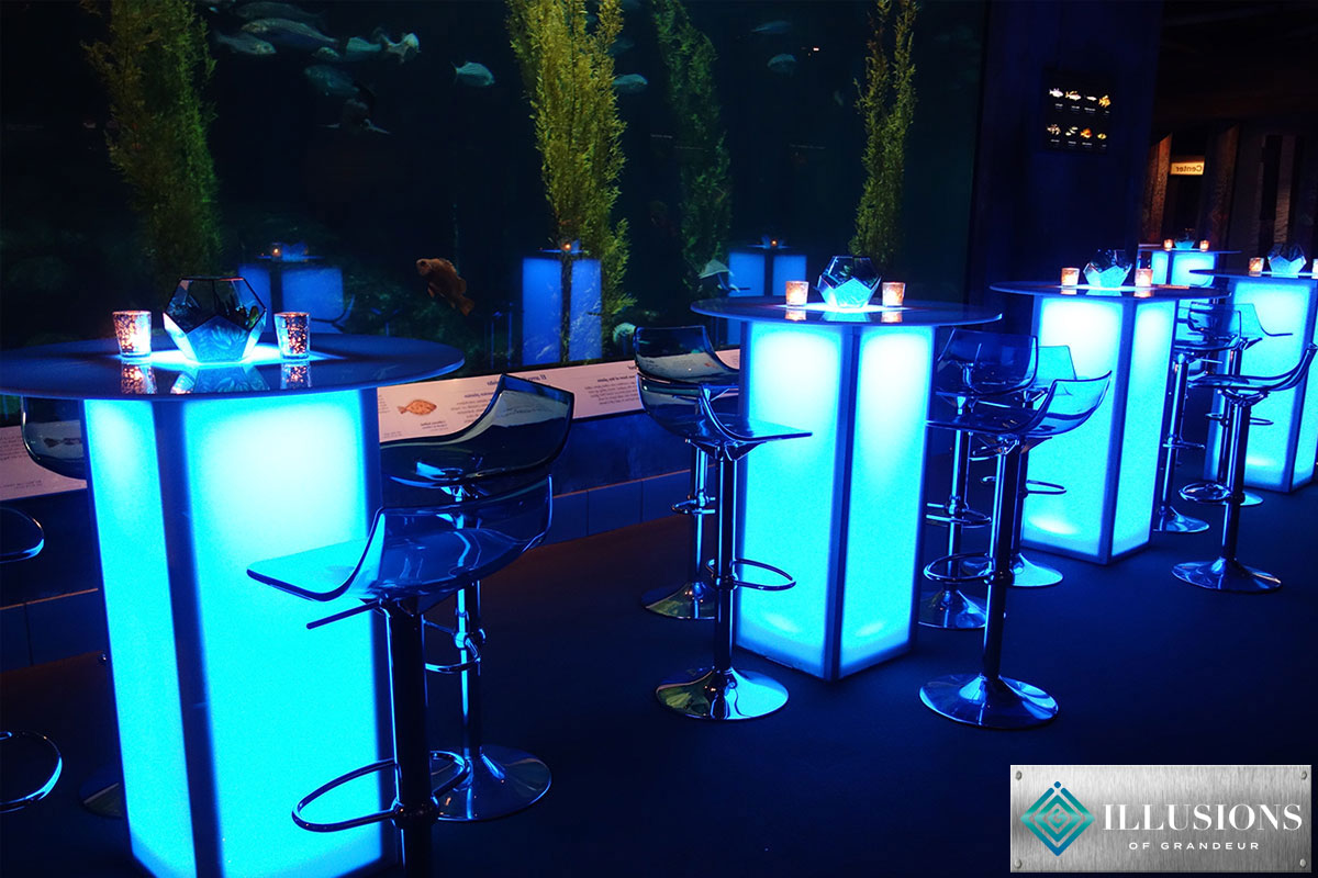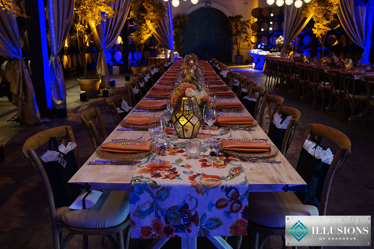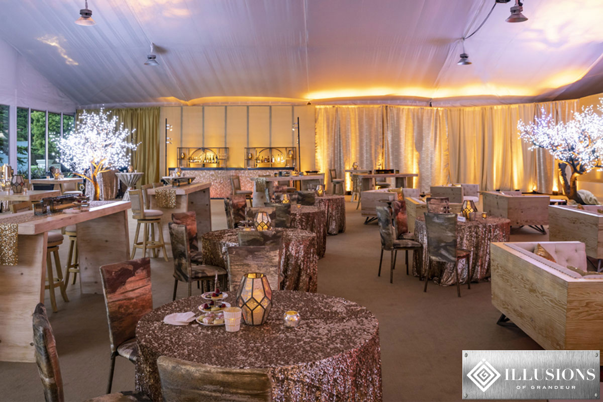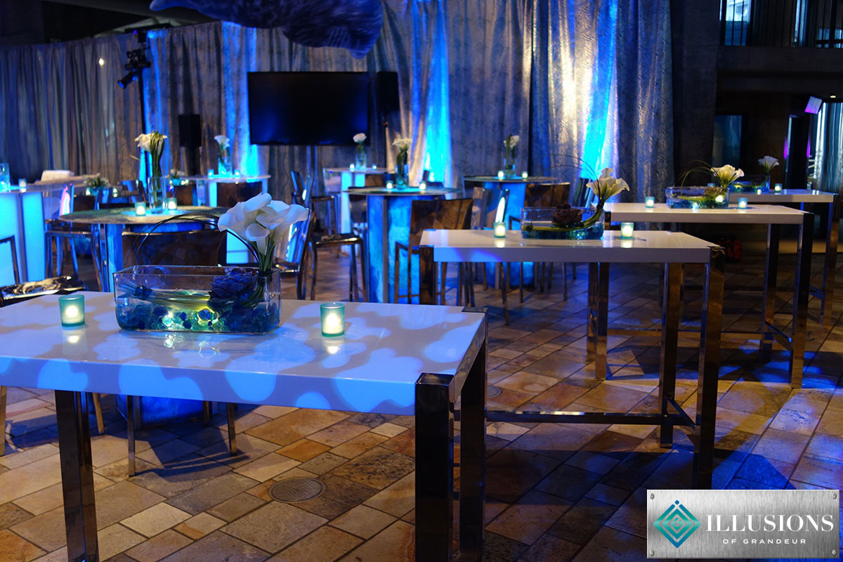 Time to celebrate! The cocktail portion of the event sets the stage and our custom tables start the party.